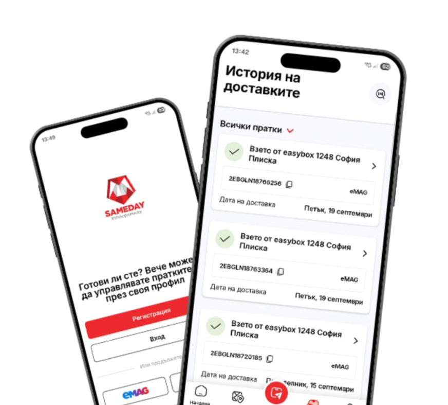 С приложението SAMEDAY можеш да проследяваш доставката си в реално време, да я пренасочваш или отлагаш и да плащаш с карта.
